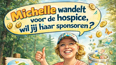 Met elke stap die ze zet wil Michelle bijdragen aan de warme en liefdevolle zorg voor de gasten die bij ons verblijven. Wilt u haar – en daarmee ons hospice – sponsoren? Iedere bijdrage, groot of klein, maakt een verschil en wordt enorm gewaardeerd!